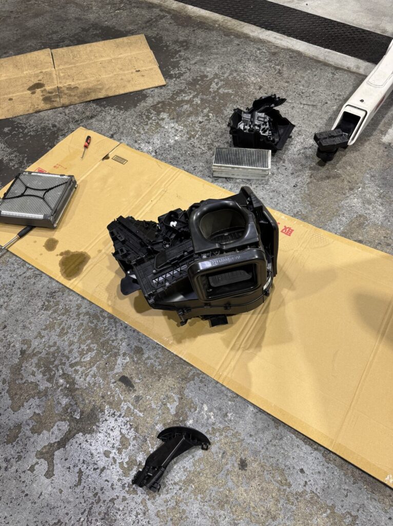 ヒーターコアつまりでの交換作業になります。暖房が温かくないとのことでの交換作業です。内装を全部ばらすという、大仕事になります(-_-;)